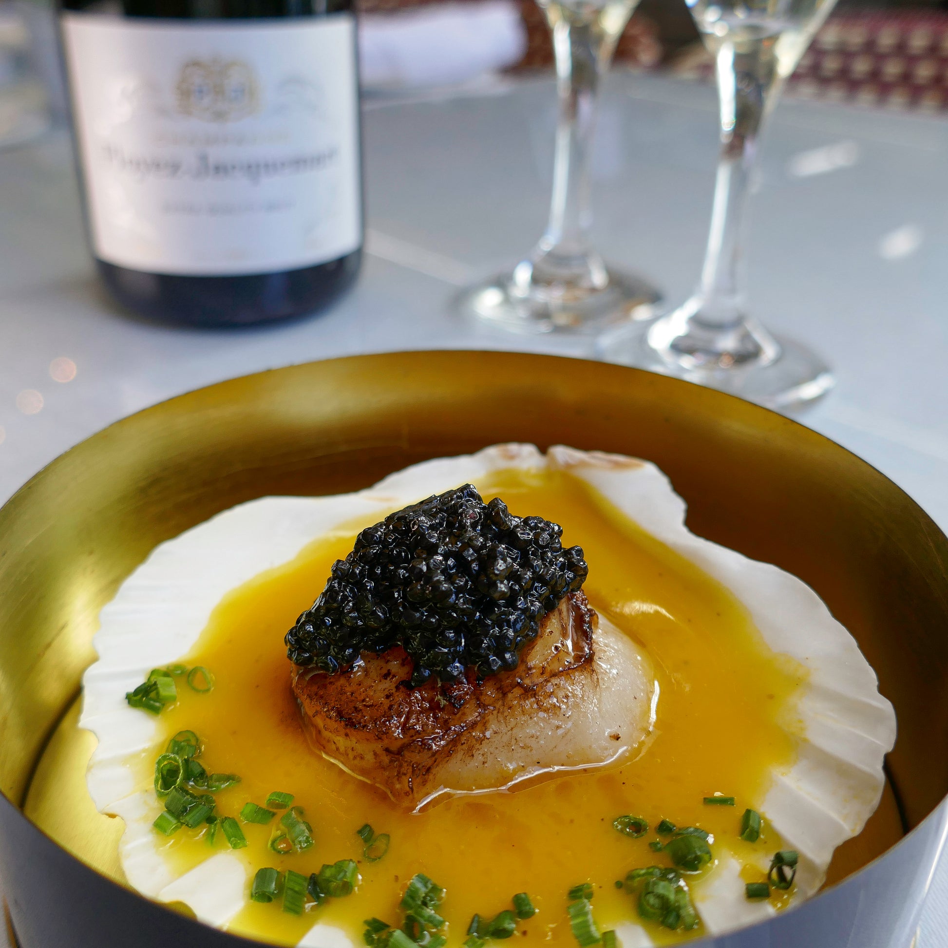 Signature: Seared Scallop with Kaviari Caviar — Brut Vintage Blanc de Noirs 2015